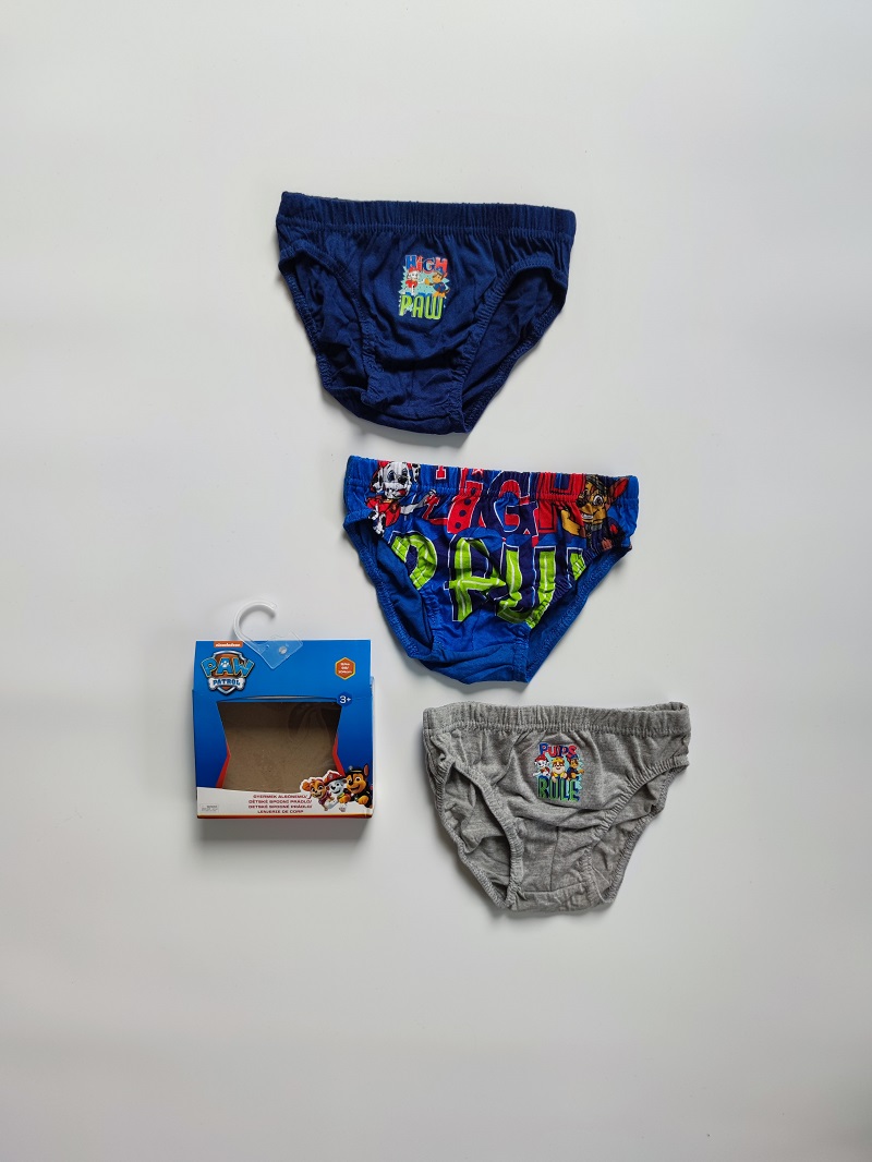 Chlapecké slipy s oblíbeným motivem TLAPKOVÉ PATROLY.  Balení obsahuje 3 ks. Baleno v papírové krabičce.
