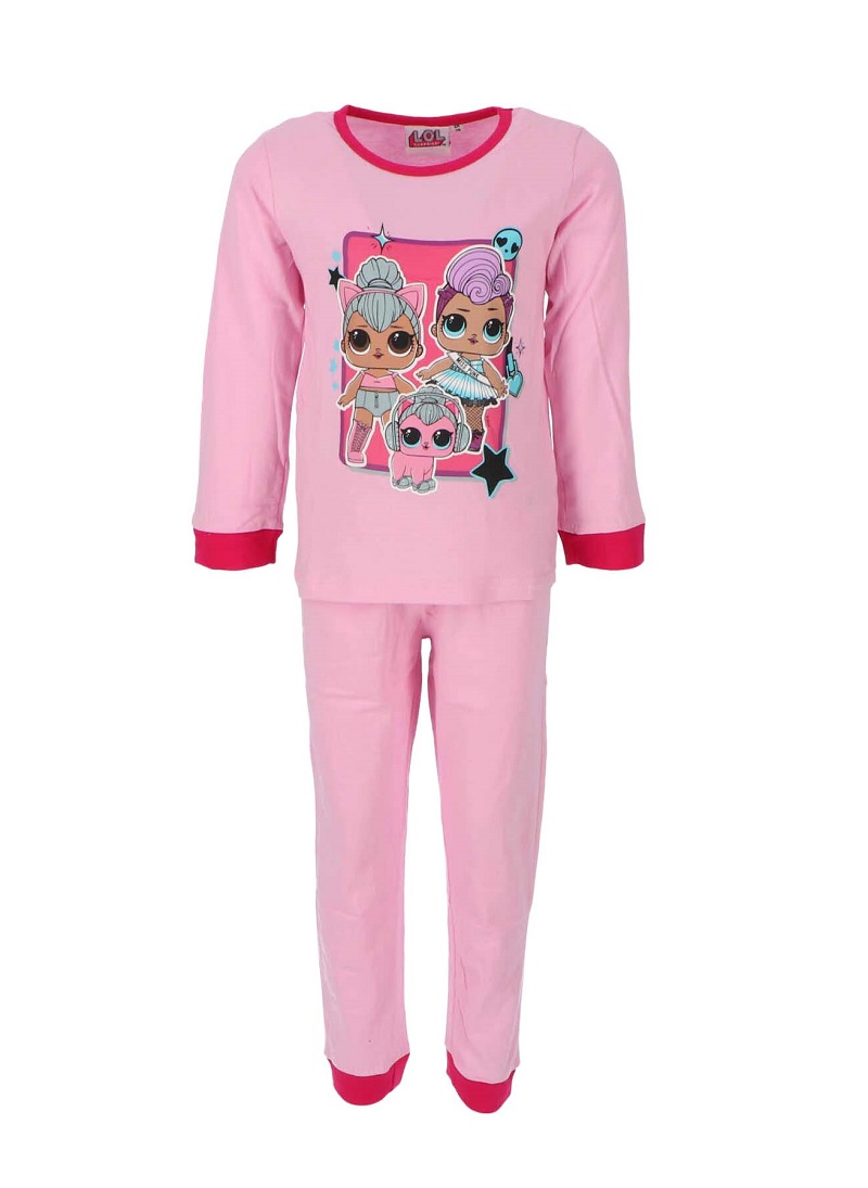 Dívčí pyžamo s oblíbeným motivem LOL. Tričko s dlouhým rukávem a potiskem, kalhoty jednobarevné s pružnými náplety na nohavicích.  celý popis