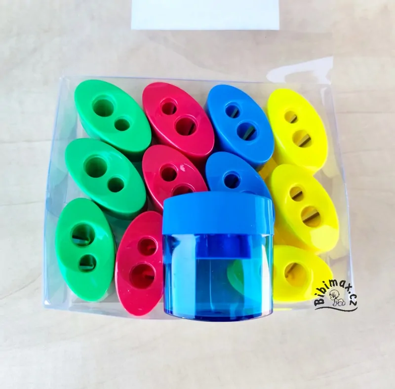 Barevné ořezávátko na dvě tužky se zásobníkemSkladem 1 ks29 Kč/ ks24 Kč bez DPH