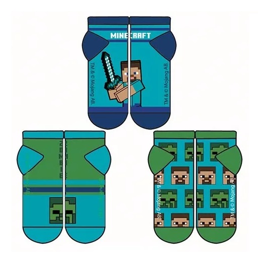 Pružné kotníčkové ponožky s oblíbenými motivy MINECRAFT.  Balení obsahuje 3 ks. celý popis