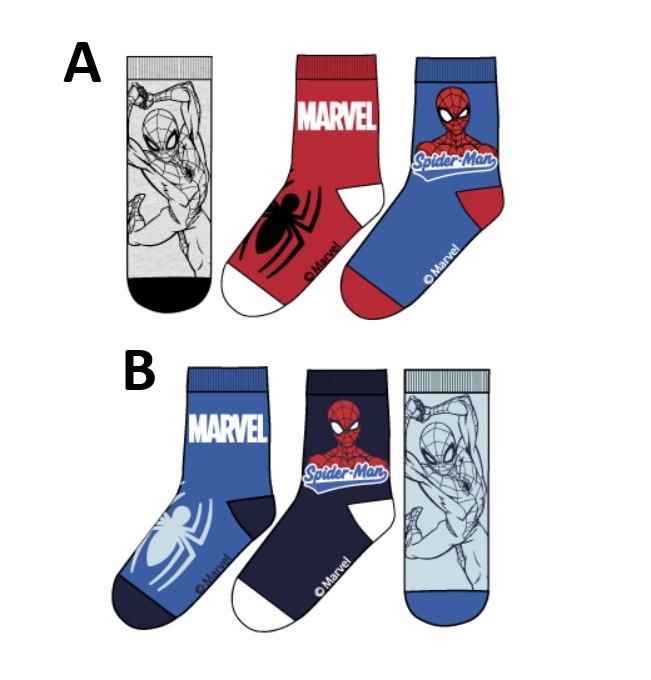 Pružné ponožky s oblíbeným motivem SPIDERMAN.  Balení obsahuje 3 ks. Varianta A nebo B.  celý popis