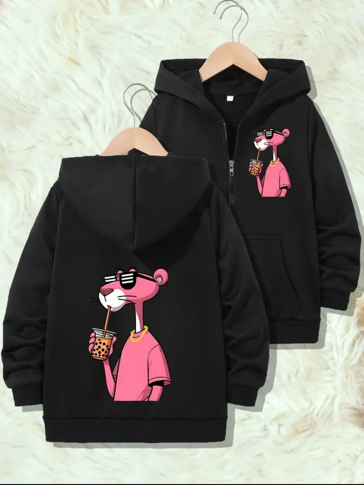 Velurová mikina na zip s Růžovým Panterem – měkká, stylová a roztomilá