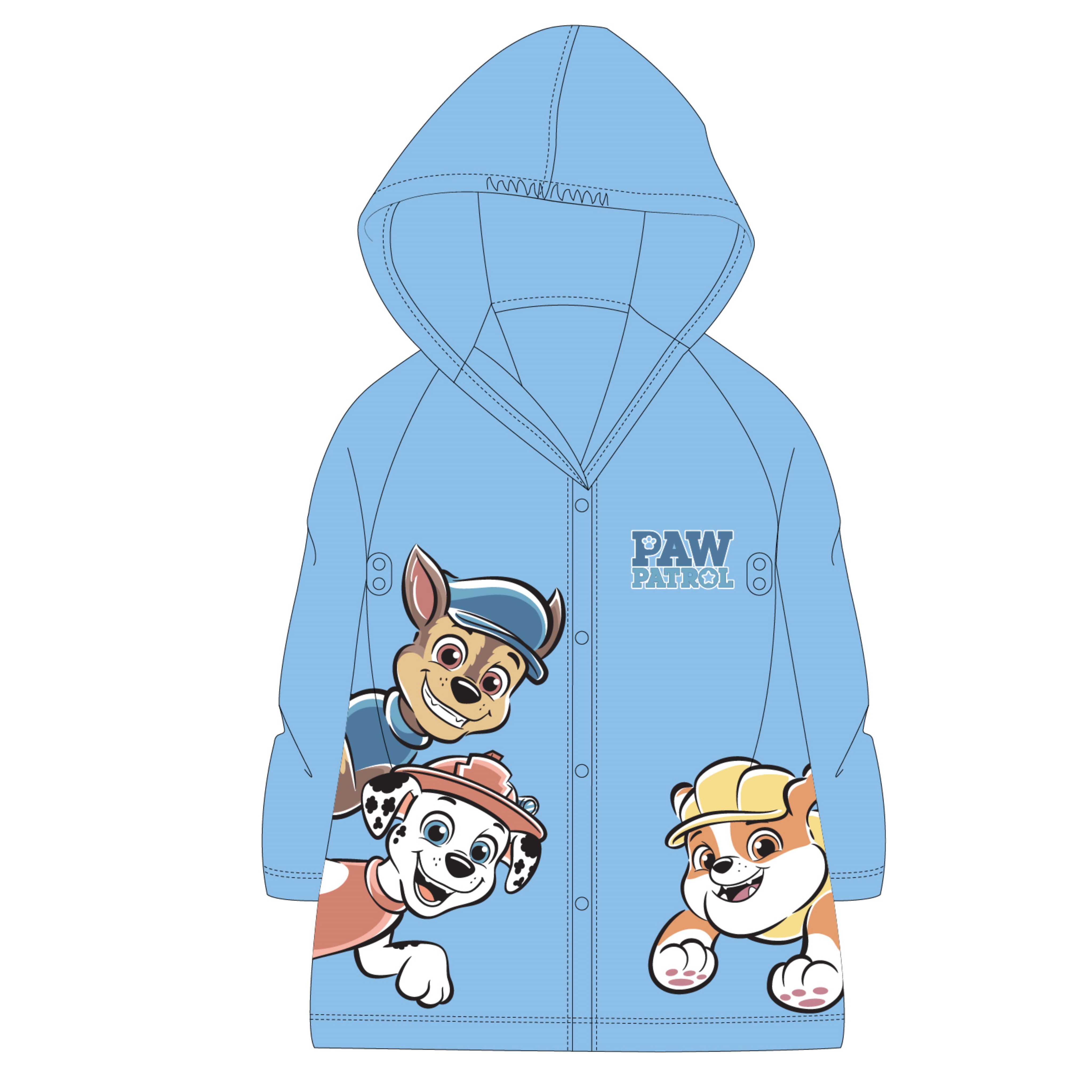 Krásná dětská pláštěnka s oblíbeným CHASEM, RUBBLEM a MARSCHALEM z dětského seriálu TLAPKOVÁ PATROLA - Paw Patrol.