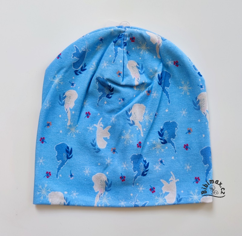 Bavlněná dívčí čepice s oblíbeným motivem z dětského filmu FROZEN - Ledové království.