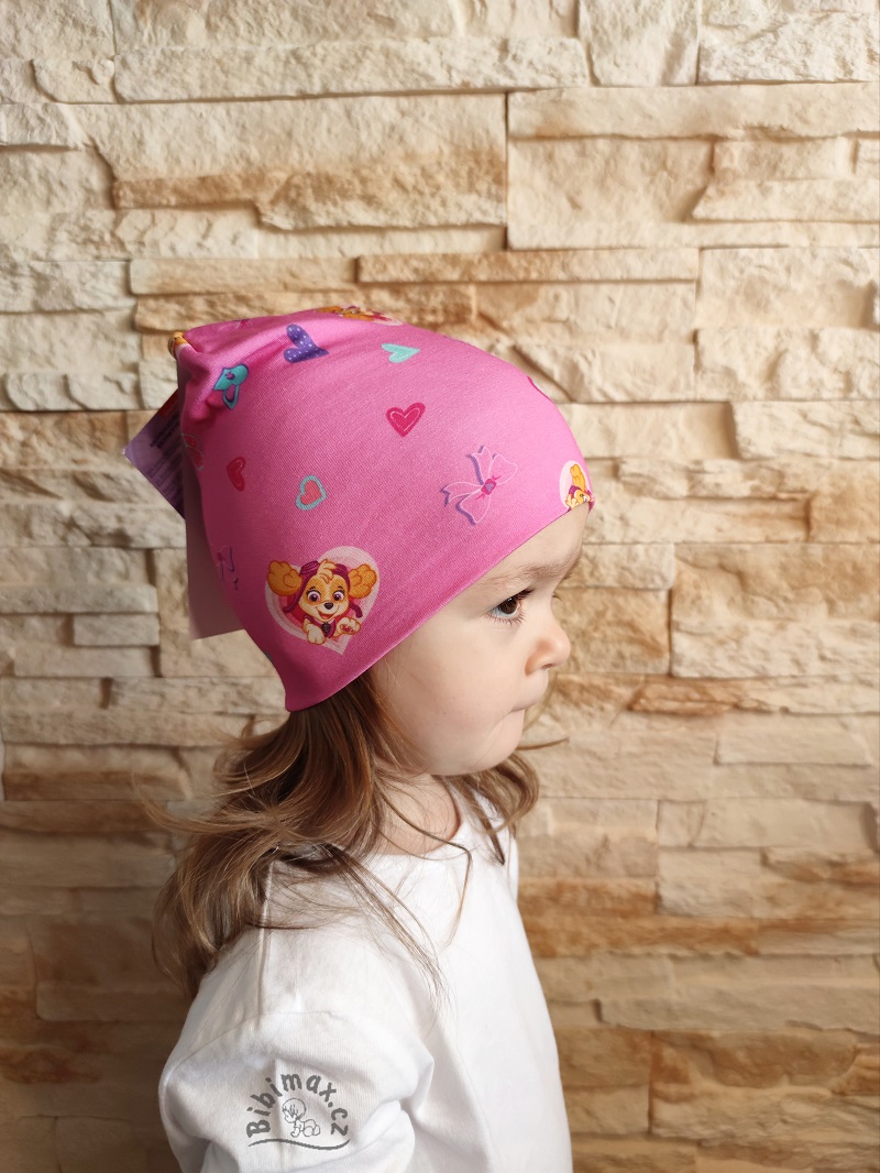Dívčí čepice TLAPKOVÁ PATROLA růžová - potisk