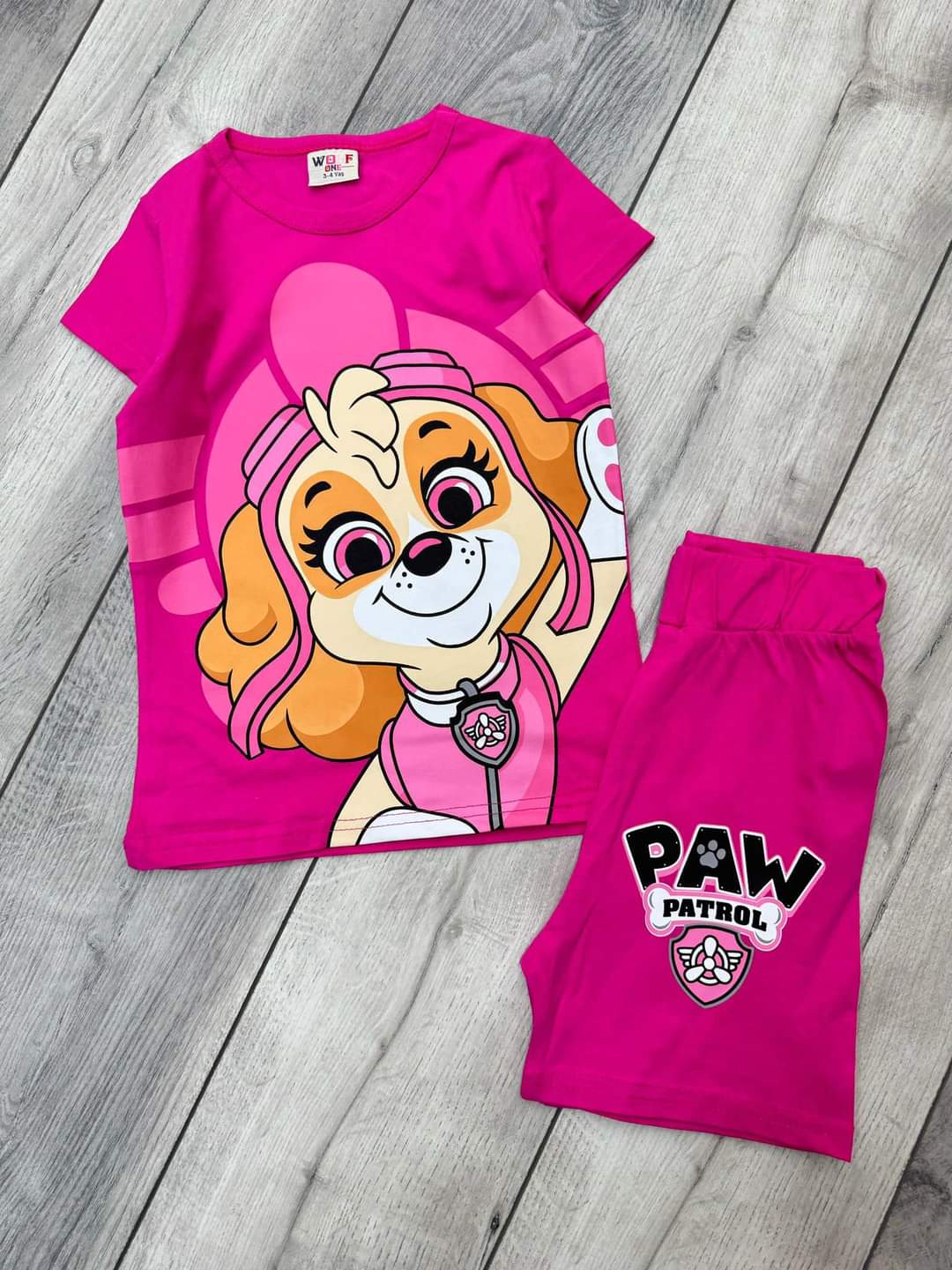 Dívčí letní komplet TLAPKOVÁ PATROLA tmavě růžový