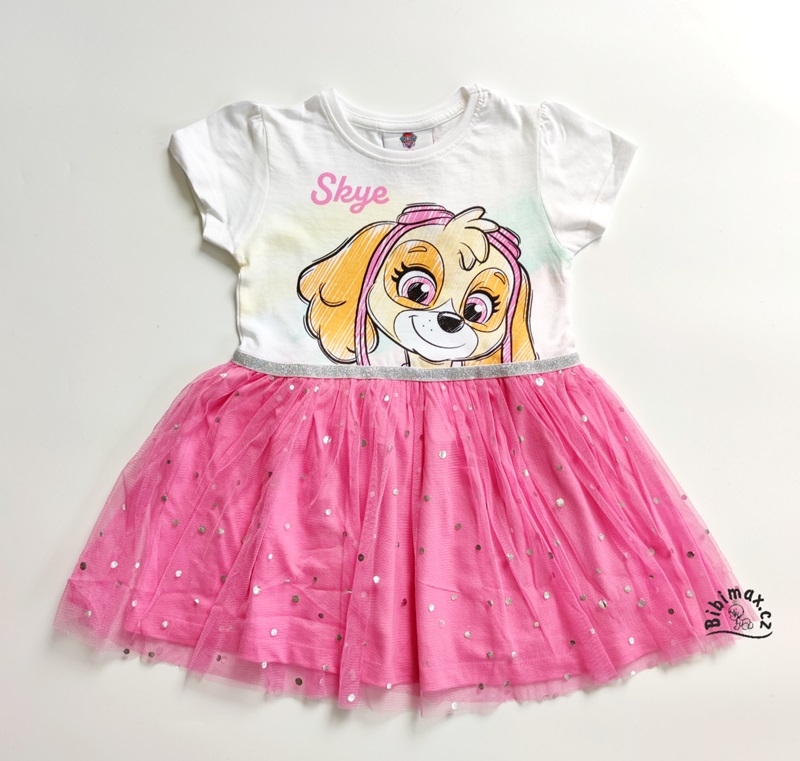 Krásné šaty s tylovou sukní a oblíbenou SKY z dětského seriálu TLAPKOVÁ PATROLA.