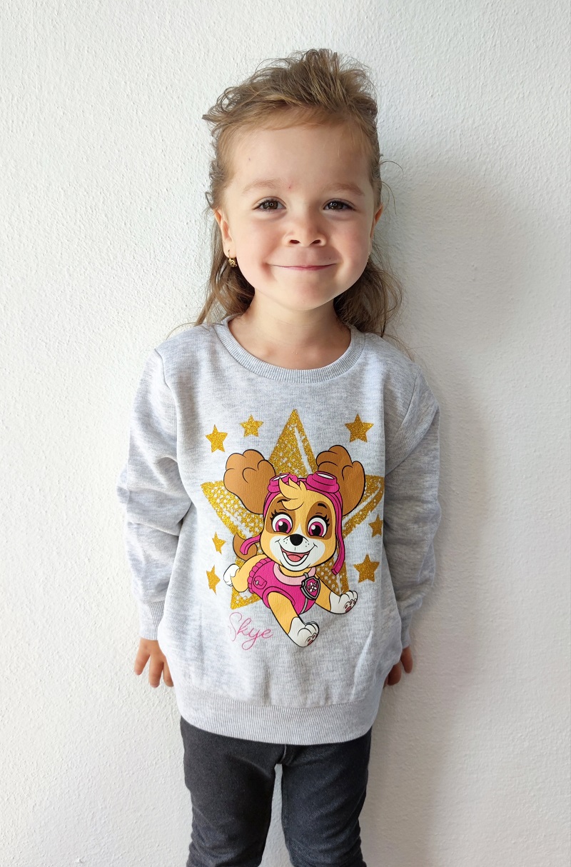 Dívčí mikina TLAPKOVÁ PATROLA šedáSkladem 5 ks279 Kč/ ks231 Kč bez DPH