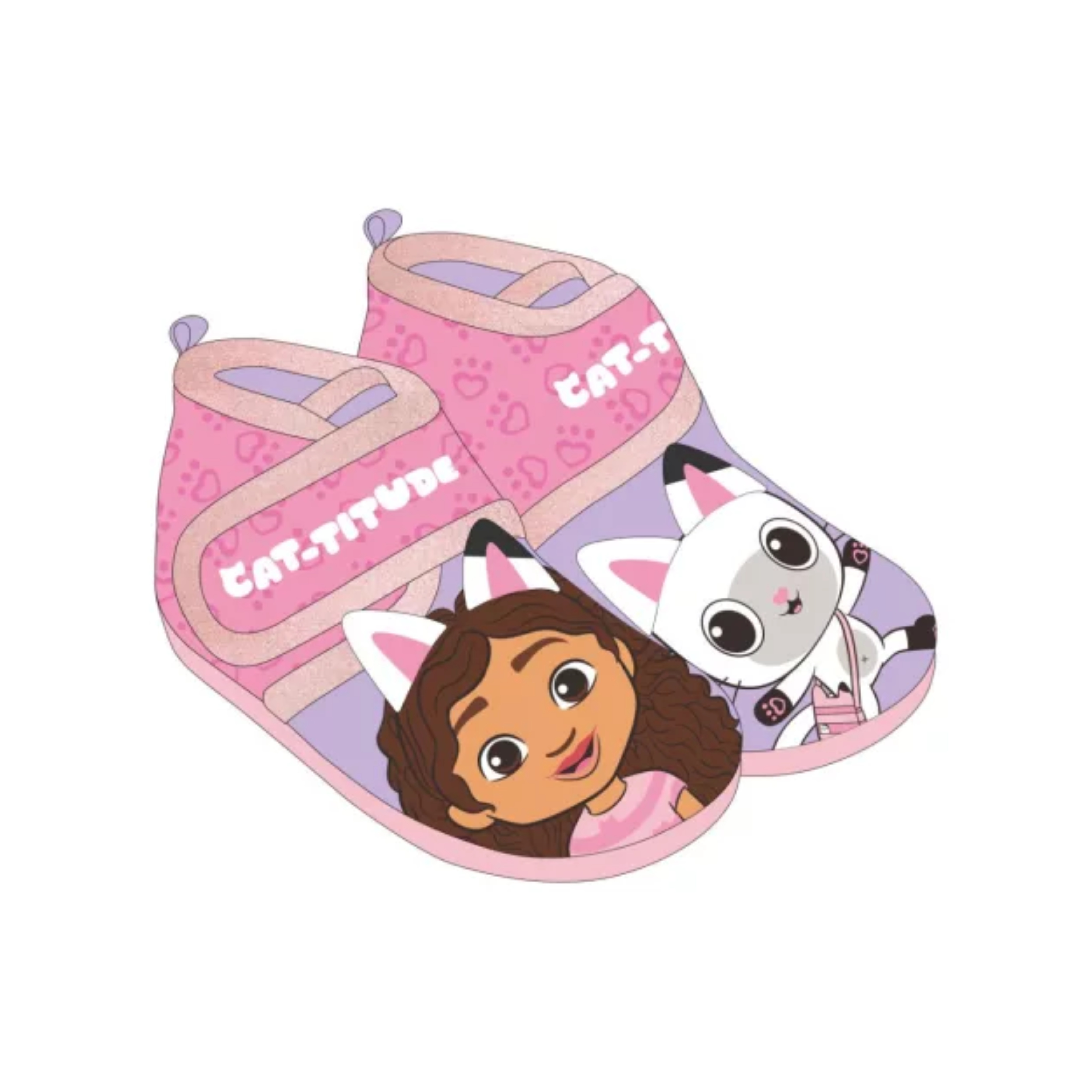 Pohodlné dívčí papuče s veselým motivem oblíbené GABBY z dětského seriálu Gábinin kouzelný domek, které si malí fanoušci tohoto seriálu okamžitě zamilují. Vyrobené z měkkého a hřejivého materiálu, aby udržely nohy v teple a pohodlí po celý den. Protiskluzová a pružná podrážka zajišťuje bezpečný krok i na hladkých podlahách.