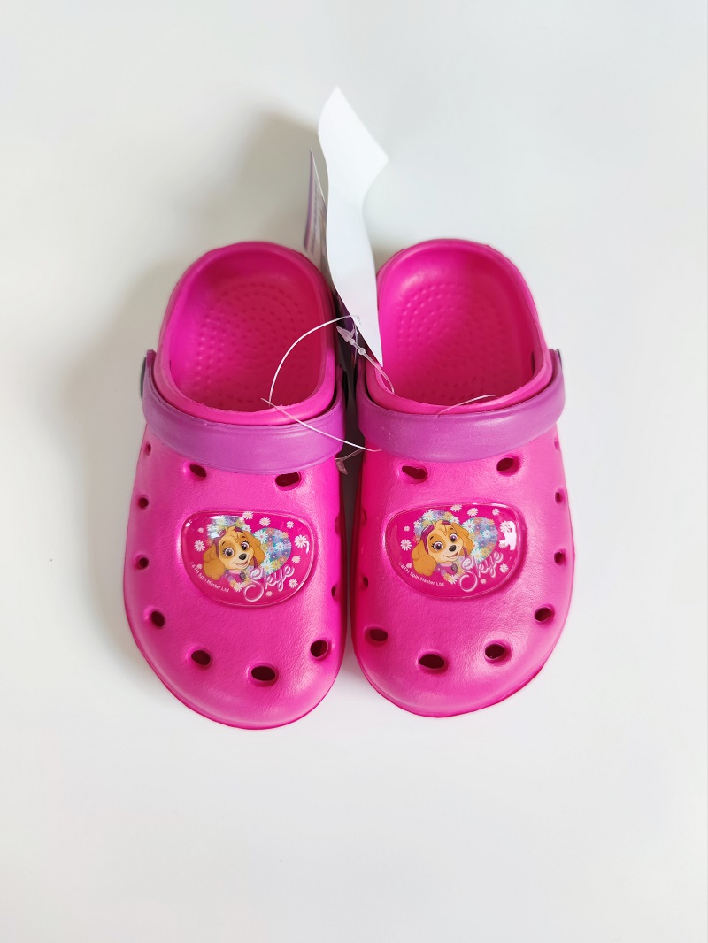 Dívčí oblíbená letní obuv Crocs s motivem TLAPKOVÁ PATROLA.  Vnitřní délky stélek: 22/23 - 15 cm 24/25 - 16,6 cm 26/27 - 17,7 cm 28/29 - 19,5 cm 30/31 - 21 cm 32/33 - 22 cm celý popis