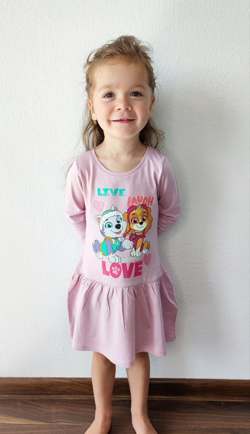 Krásné šaty s dlouhým rukávem s oblíbenou SKY a EVEREST z dětského seriálu TLAPKOVÁ PATROLA.