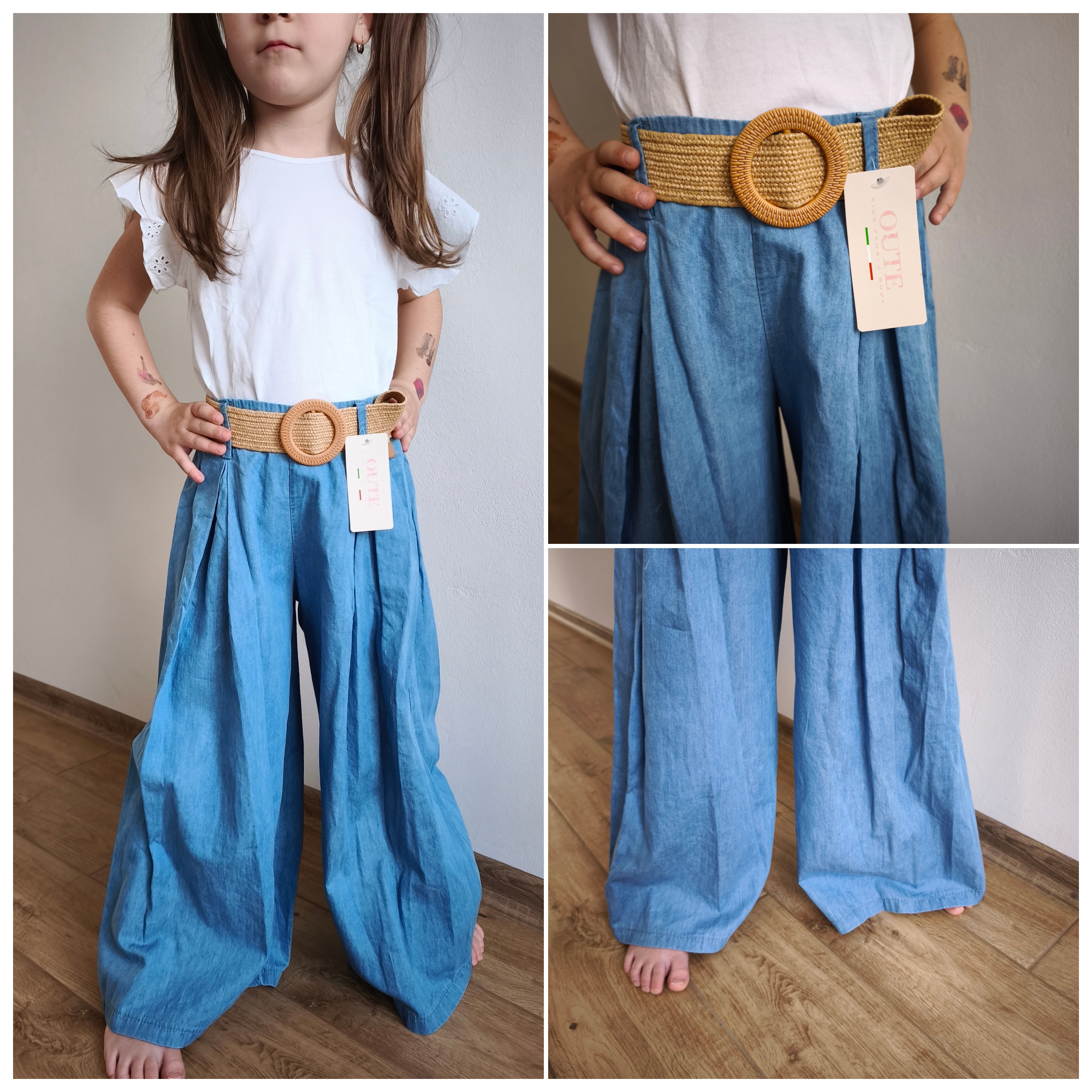 Lehké dívčí letní kalhoty v moderním širokém střihu jsou ideální volbou pro horké dny. Jsou vyrobeny ze 100% bavlny, díky čemuž jsou mimořádně příjemné na dotek, prodyšné a pohodlné při celodenním nošení. Volnější střih zajišťuje maximální komfort a volnost pohybu. Součástí kalhot je i stylový pásek, který podtrhne celkový vzhled a umožní přizpůsobení v pase. Skvělá volba pro volný čas, dovolenou i každodenní nošení.. 💙