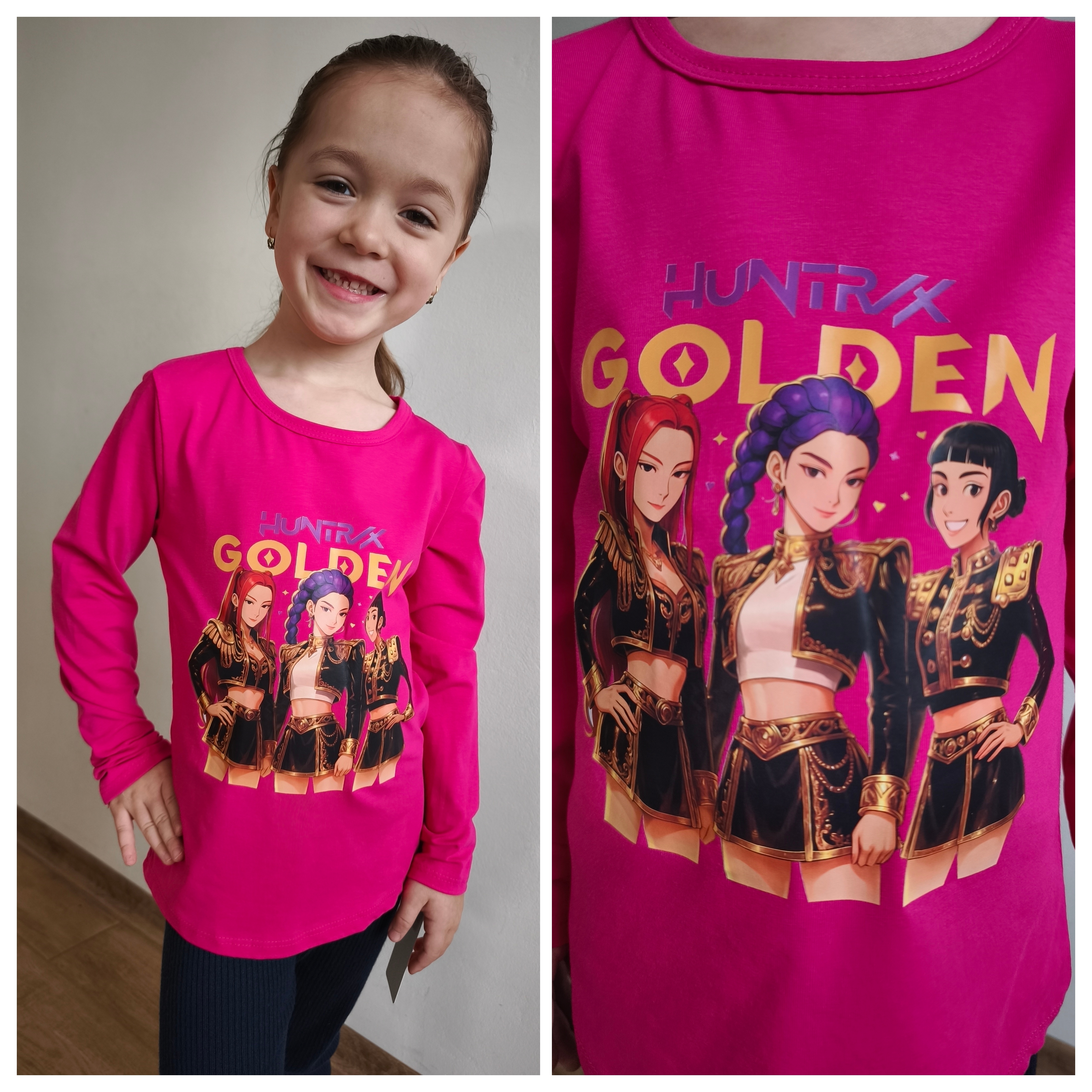 Dívčí tričko KPop Demon Hunters - HUNTRIX - růžové Golden DRSkladem 2 ks239 Kč/ ks198 Kč bez DPH