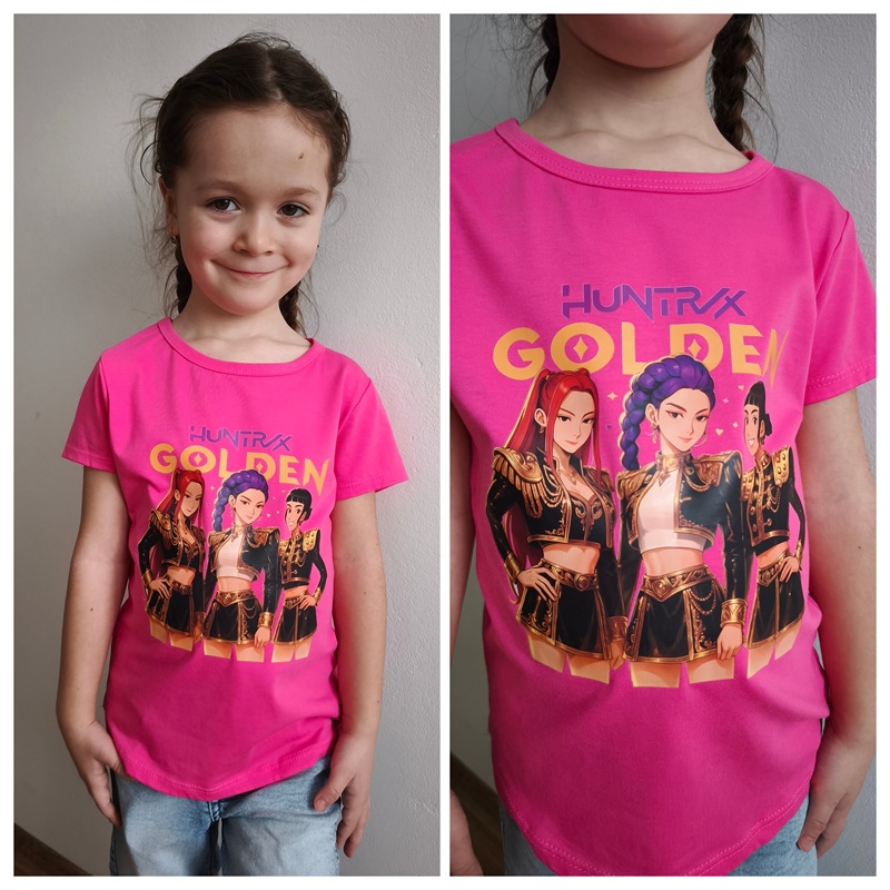 Dívčí tričko KPop Demon Hunters - HUNTRIX - růžové Golden KRSkladem 1 ks239 Kč/ ks198 Kč bez DPH
