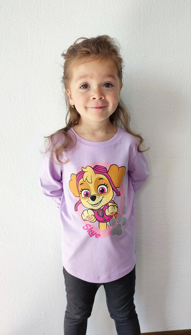 Dívčí bavlněné tričko s dlouhým rukávem s oblíbenou SKY z dětského seriálu TLAPKOVÁ PATROLA.