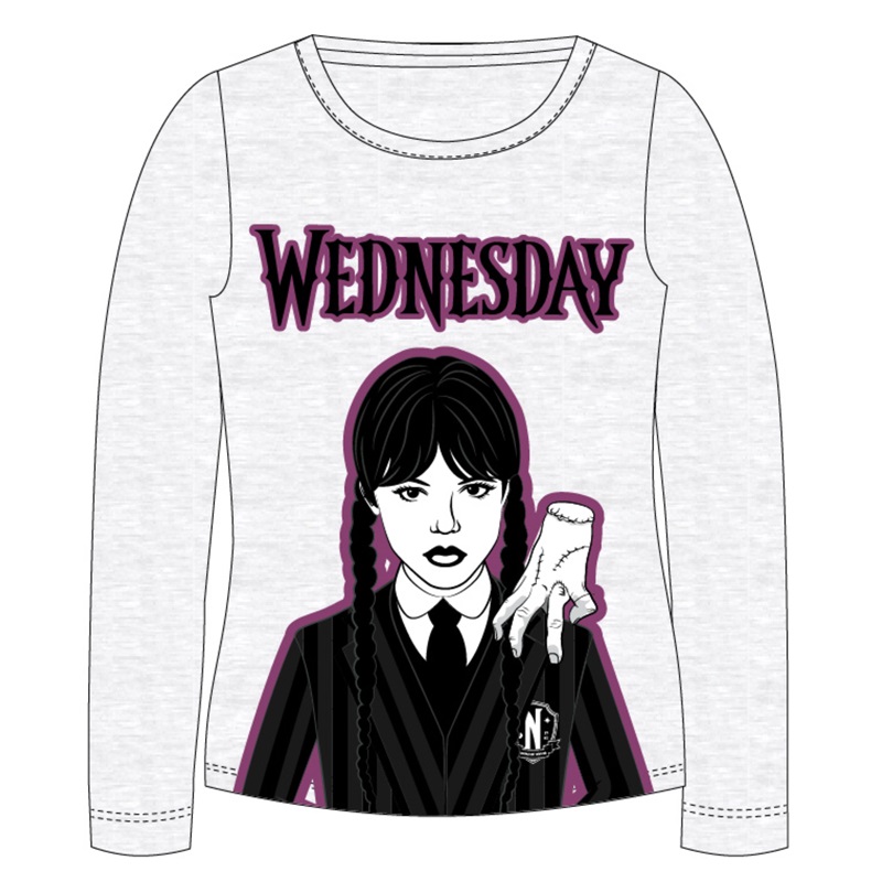 Dívčí bavlněné tričko s dlouhým rukávem s oblíbenou WEDNESDAY.