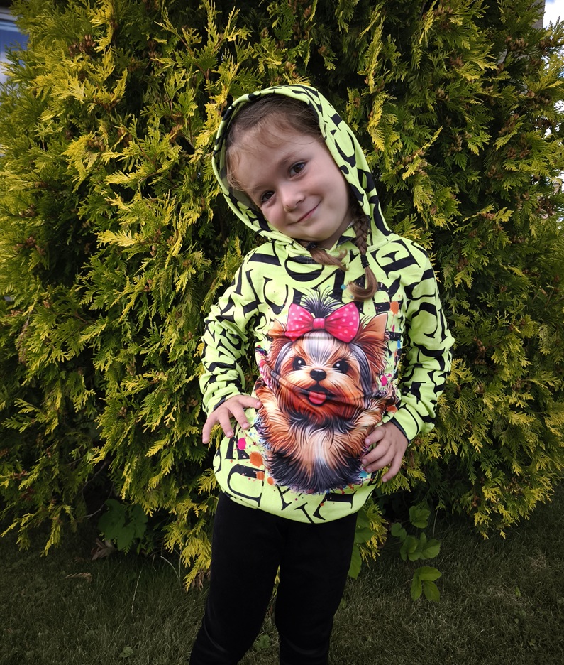 Úžasná velurová mikina s pejskem – Jorkšírem, zářivě zelená Stylová a heboučká! Tato velurová mikina v zářivé zelené barvě zaujme na první pohled a potěší milovníky pejsků. Na přední straně ji zdobí roztomilý motiv jorkšíra, který dodává mikině jedinečný charakter. ✔ Příjemný velurový materiál – měk... celý popis