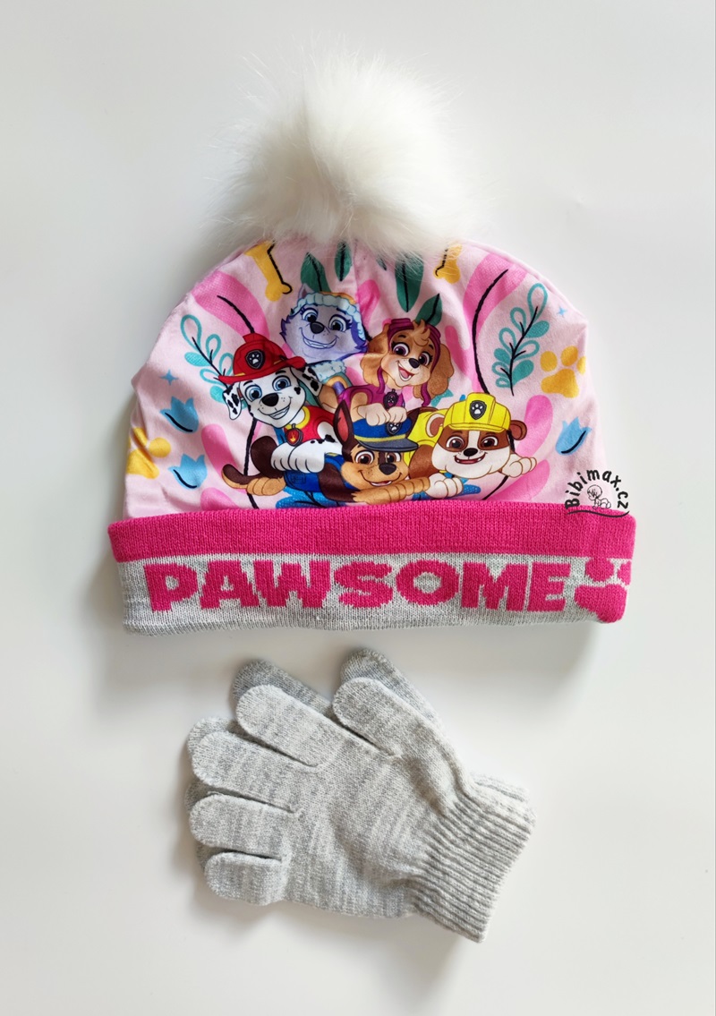 Dívčí sada zimní čepice a rukavic s oblíbenými pejsky z dětského seriálu TLAPKOVÁ PATROLA.