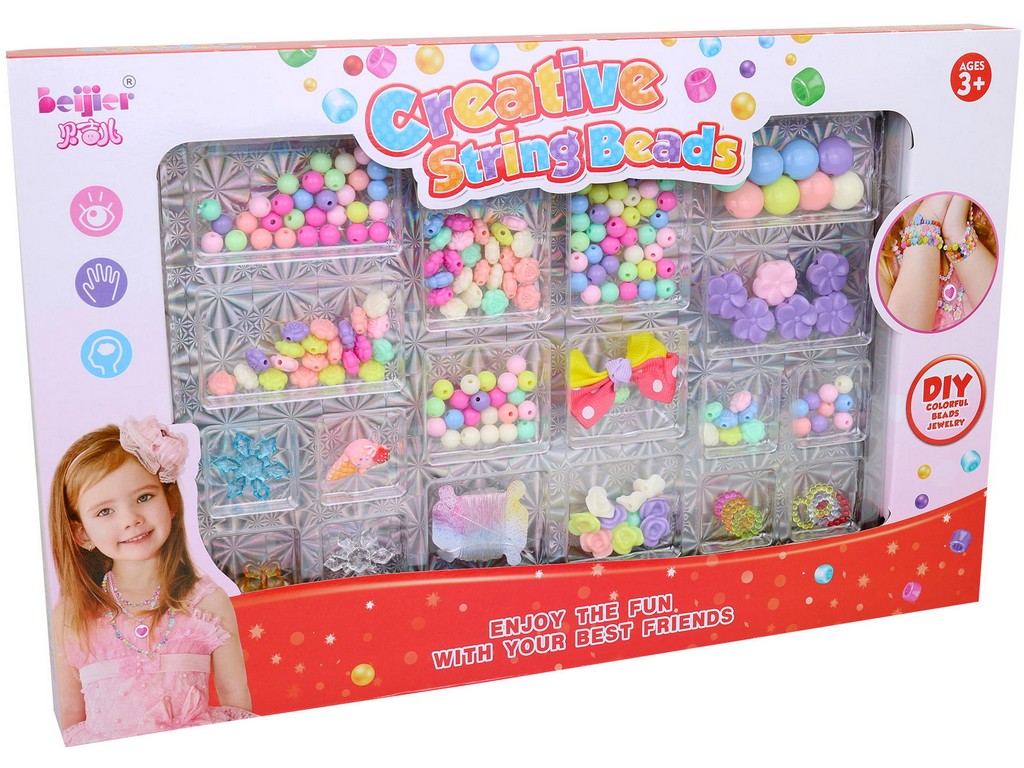 Sada různě barevných pastelových korálků, různých tvarů určitě udělá radost nejedné malé tvořivé holčičce. Je pouze na fantazii každého jedince co vše je možné vytvořit. Může se jednat o tvoření vlastního šperku nebo o výrobu dárku. Korálků je dostatek i pro tvoření v malé skupince.