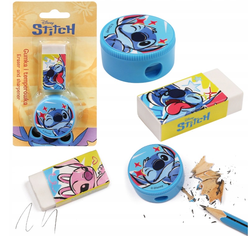 ✨ Tato sada gumy a ořezávátka s motivem Lilo a Stitch je perfektním doplňkem školních potřeb každého malého fanouška Disneyho. ✨