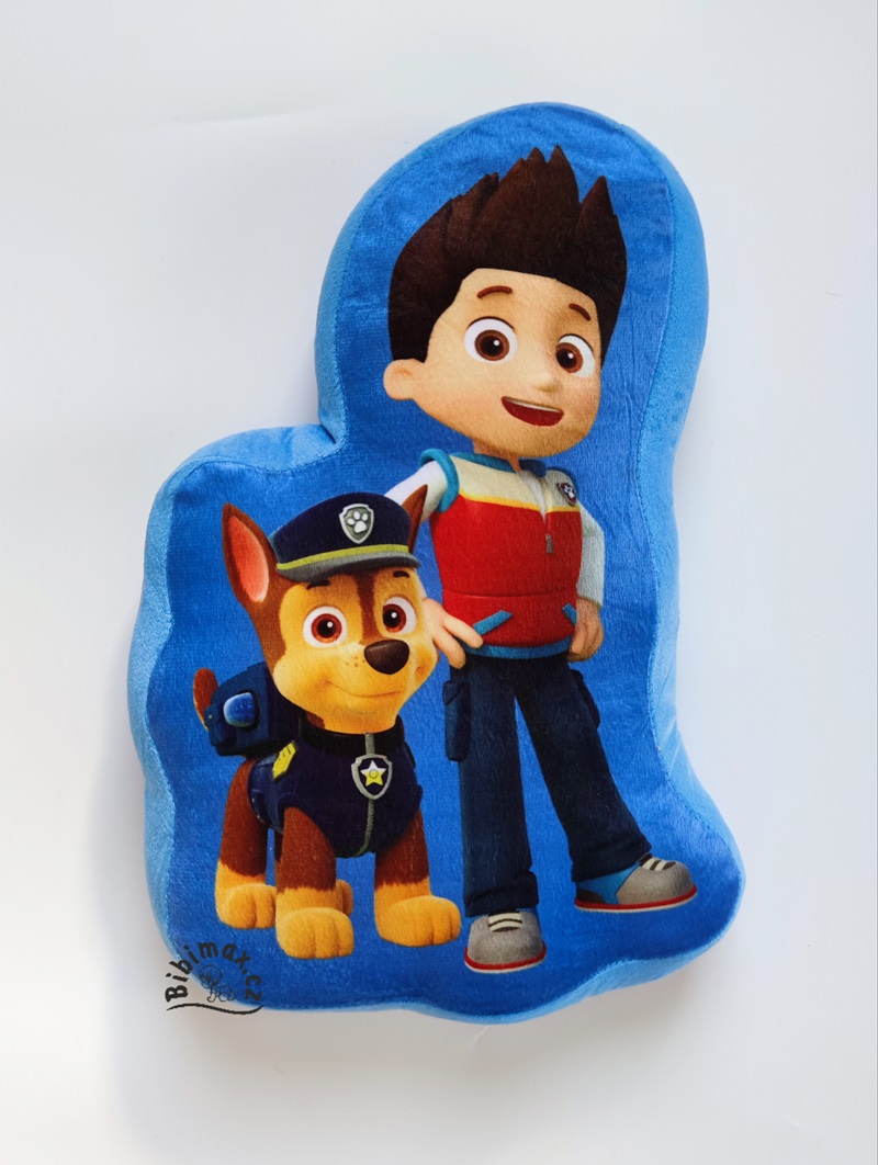 Krásný tvarovaný polštář s oblíbeným Riderem a Chasem z dětského seriálu TLAPKOVÁ PATROLA.